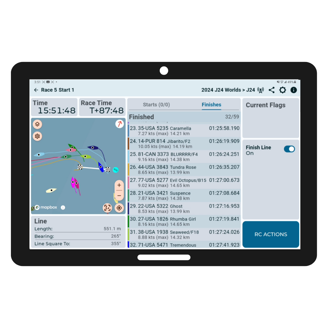 The Race Control app is your hub for all things race management, from OCS reporting, timing, tracking, and more.