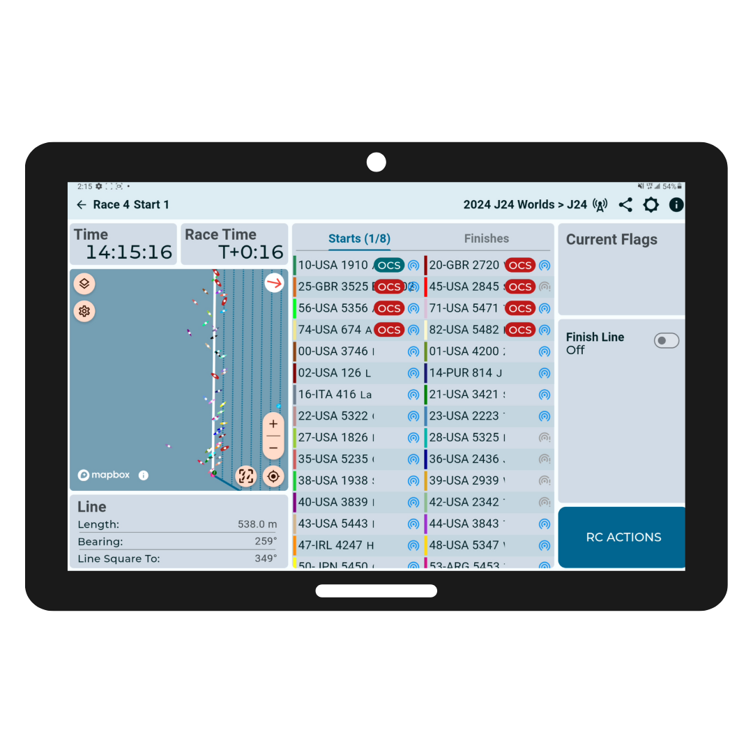The Race Control app is your hub for all things race management, from OCS reporting, timing, tracking, and more.